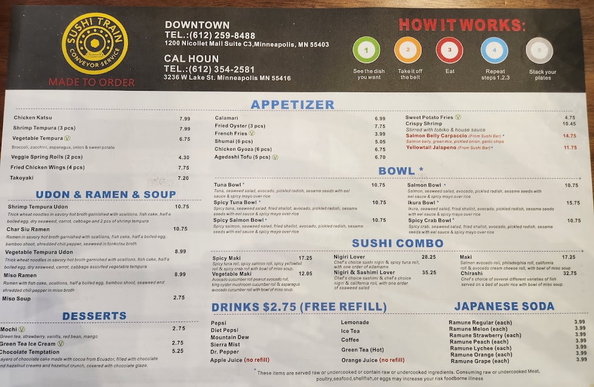 Welcome to Sushi Train Minneapolis, a delightful fusion of traditional sushi culture and modern dining experience, located at 3236 W Lake St, Minneapolis. This unique eatery features a captivating conveyor belt system where diners can peruse a vibrant array of sushi options as they glide by, making each meal a fun adventure.